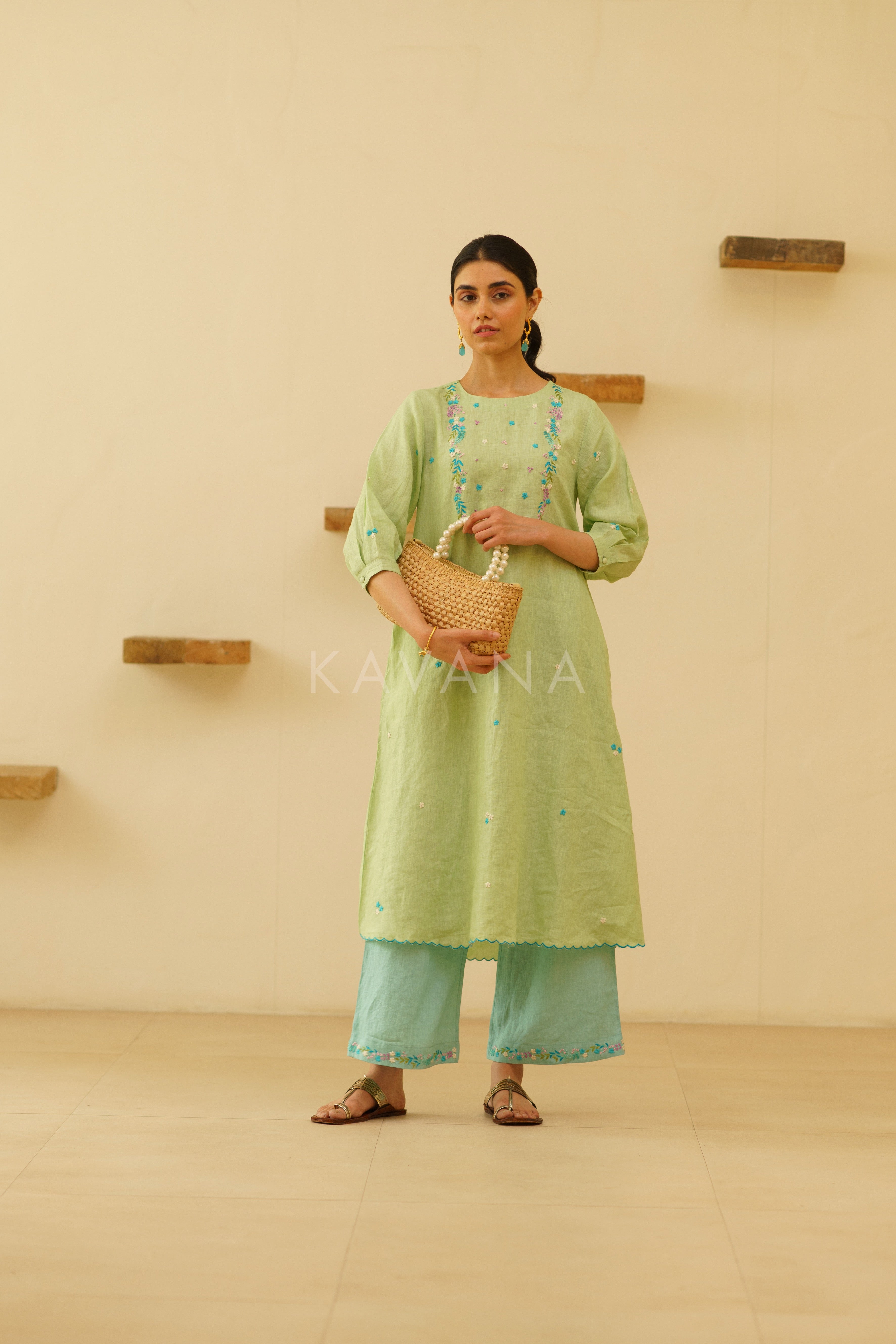 Introducing our timeless Green Kurta, elevated with intricate embroidery for an added touch of elegance. Crafted with care, this kurta exudes sophistication and style, perfect for a variety of occasions. Paired with pants, adorned with intricate floral motifs , this flowy ensemble makes it perfect for festive wear